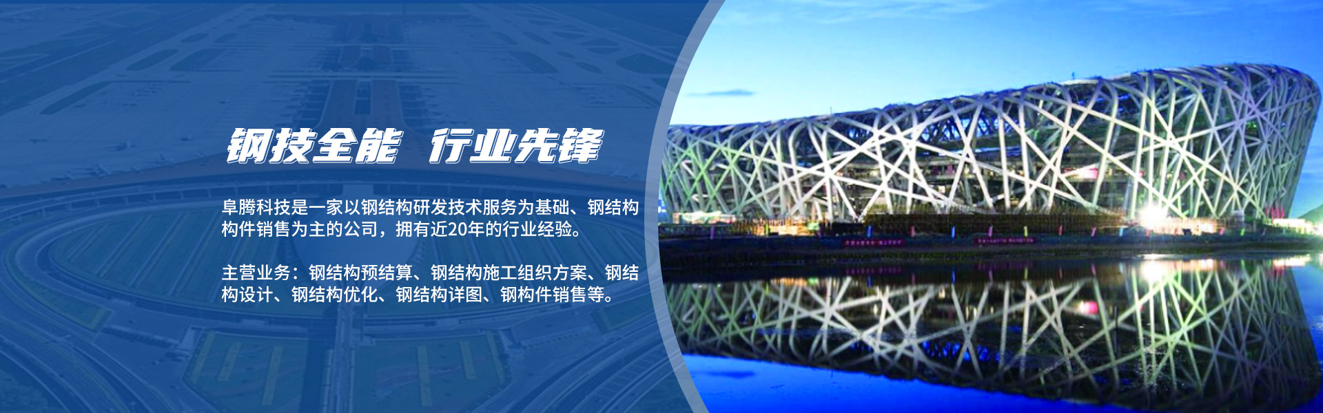 ABOUT US北京阜騰科技發(fā)展有限公司坐落于北京●順義,是一家以鋼結(jié)構(gòu)研發(fā)技術(shù)服務(wù)為基礎(chǔ)、鋼結(jié)構(gòu)構(gòu)件銷(xiāo)售為主的公司,擁有近20年的行業(yè)經(jīng)歷。